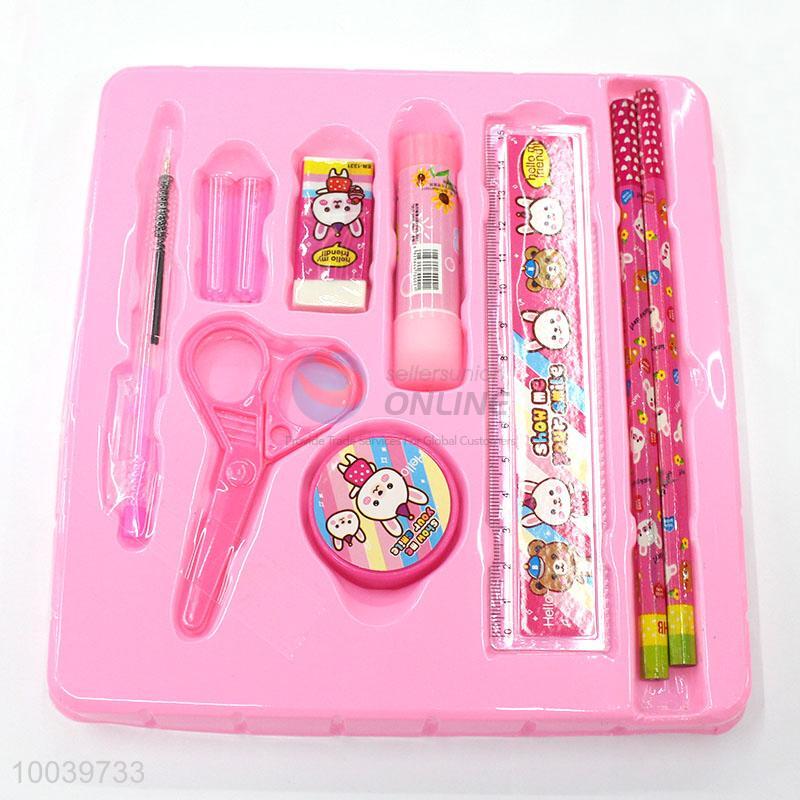 12pcs/set pink stationery set pencil pen/eraser/scissor/ruler