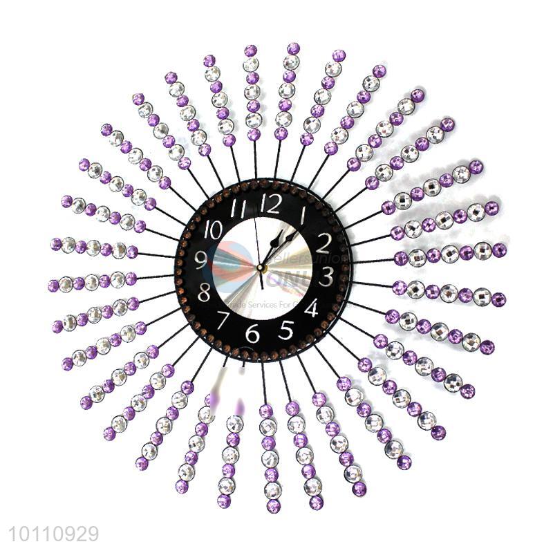 Wholesale Cheap Round Crystal Iron Wall Clock for Home Decoration