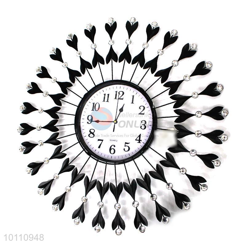 Wholesale Cheap Charming Home Decor Crystal Large Round Iron Wall Clock
