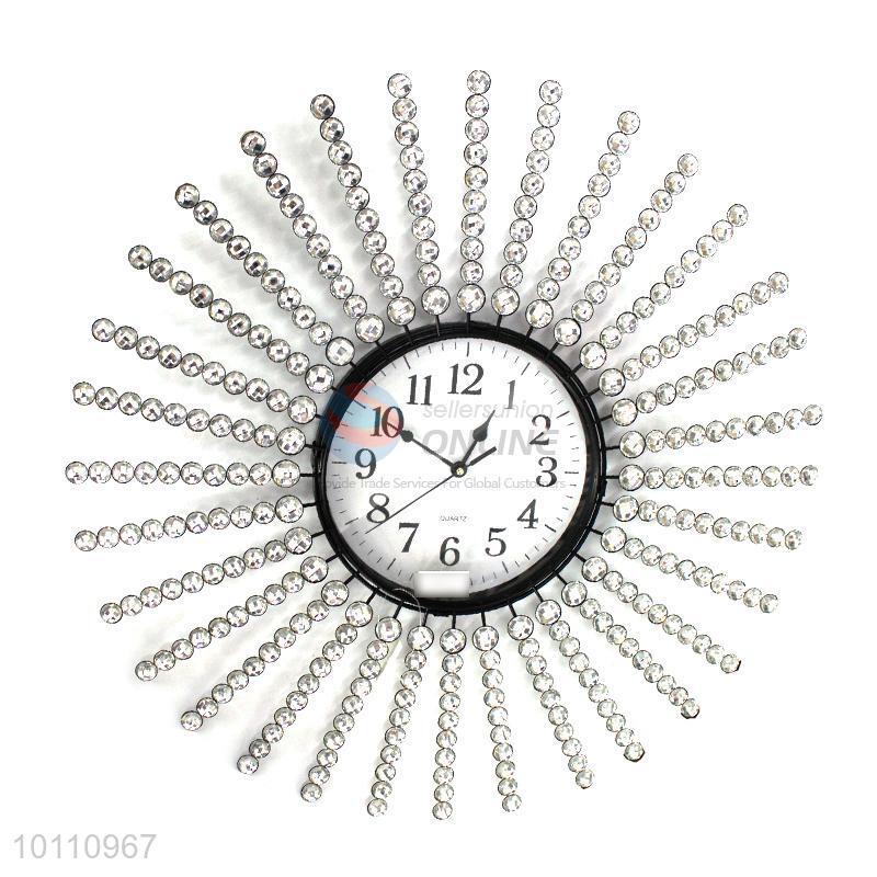 Charming Home Decor Crystal Large Round Iron Wall Clock