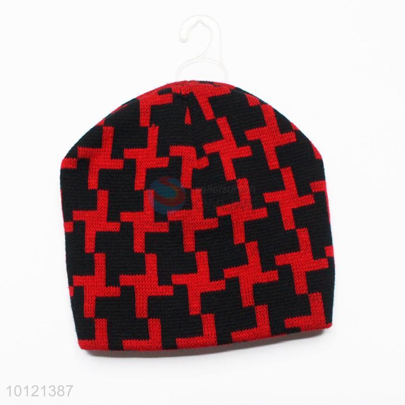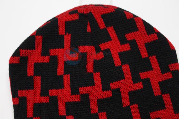 Fashion Black and Red Pattern Crochet Knitted Hats, Beanie Hats