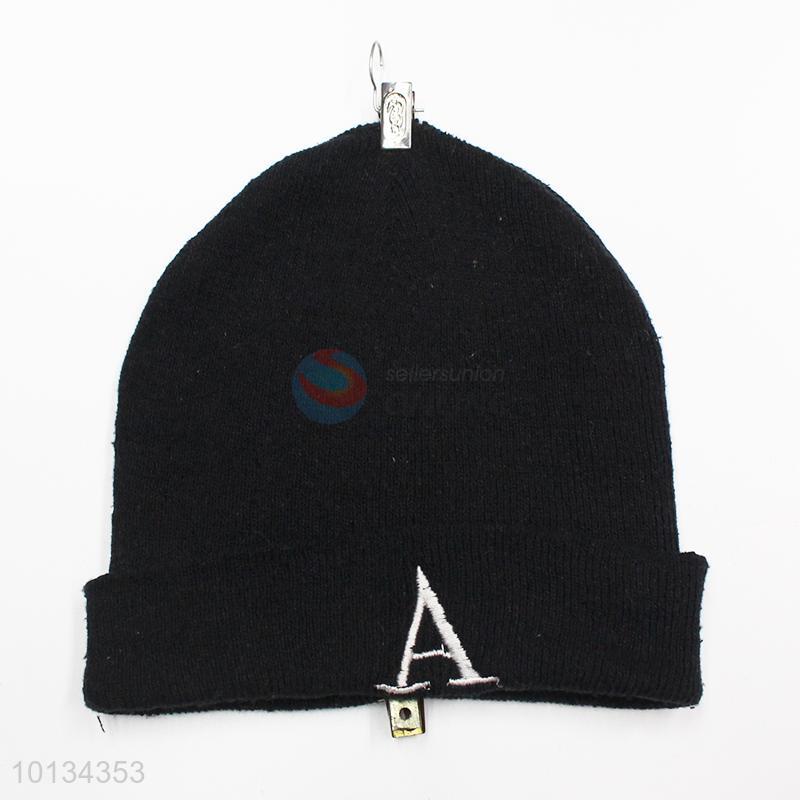 Letter A Embroidered Black Men Winter Hats