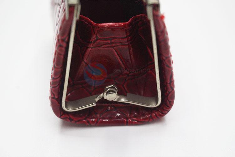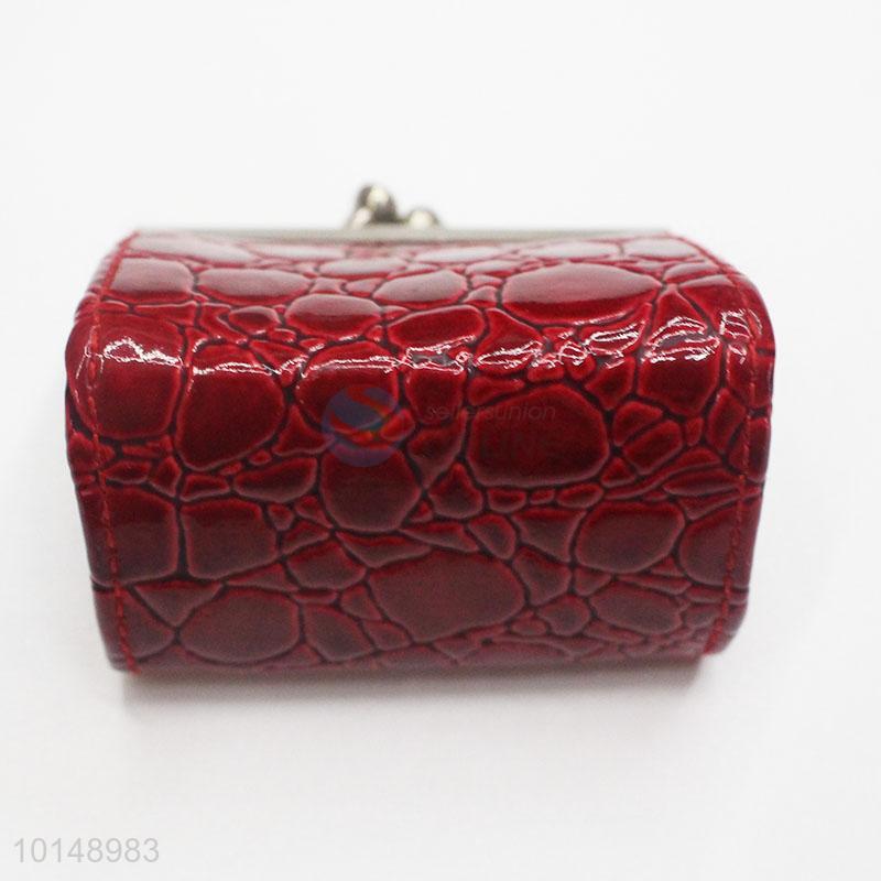 Wine Red Color Stone Pattern Hasp Coin Purse Small Wallet