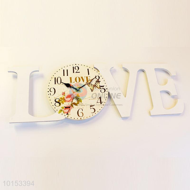 White Love Letter Shaped Wall Clock Living Room Decoration