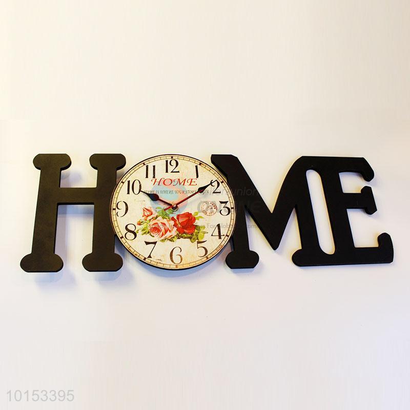 Black HOME Letter Shaped Wall Clock Living Room Decoration