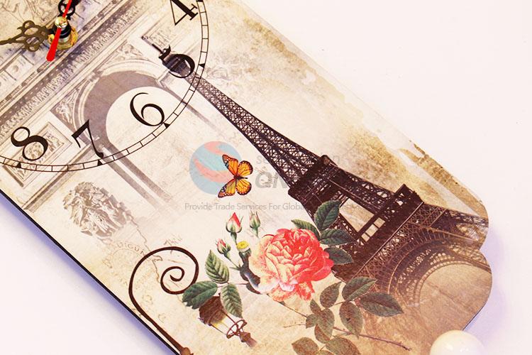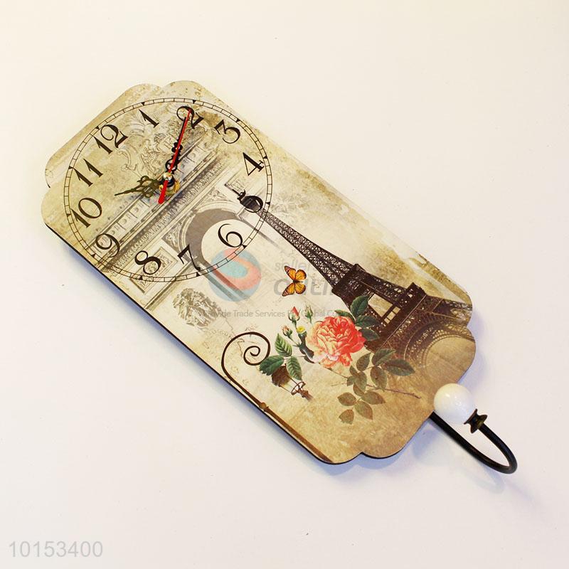 Eiffel Tower Pattern Home Decoration Bag Hat Hooks Wall Clock