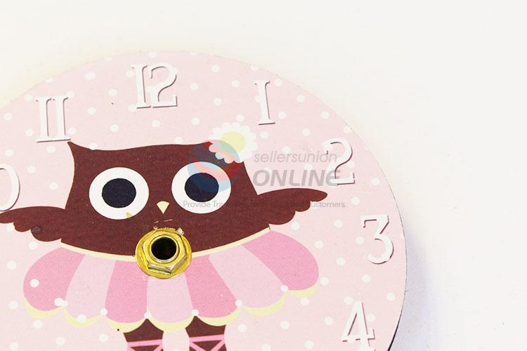 Round Shaped Pink Cartoon Owl Pattern Living Room Clocks Wall Clocks Home Decoration