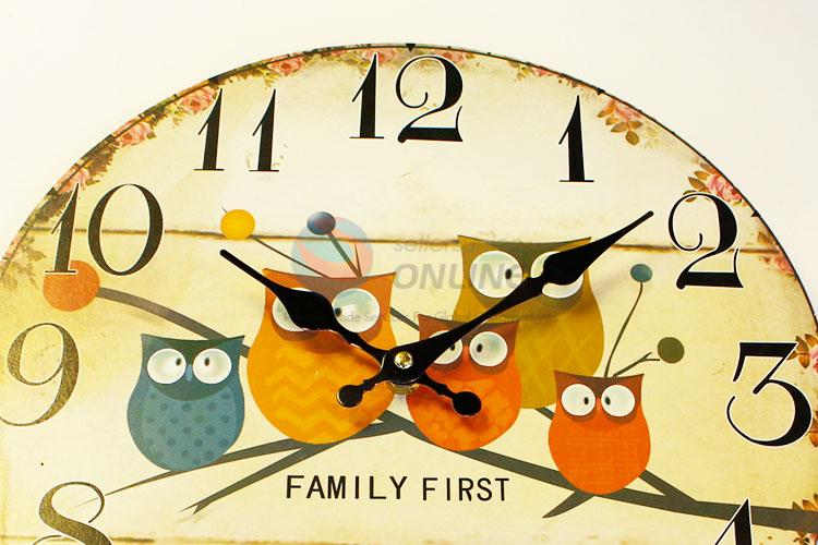 European Style Round Shaped Wall Clocks Owls Family Pattern Wooden Clock
