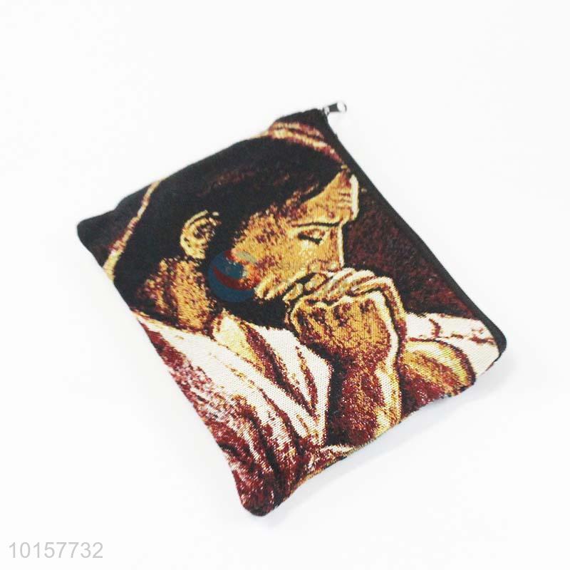 14*18cm High Quality Religious Themes Grosgrain Coin Purse with Zipper