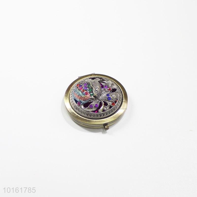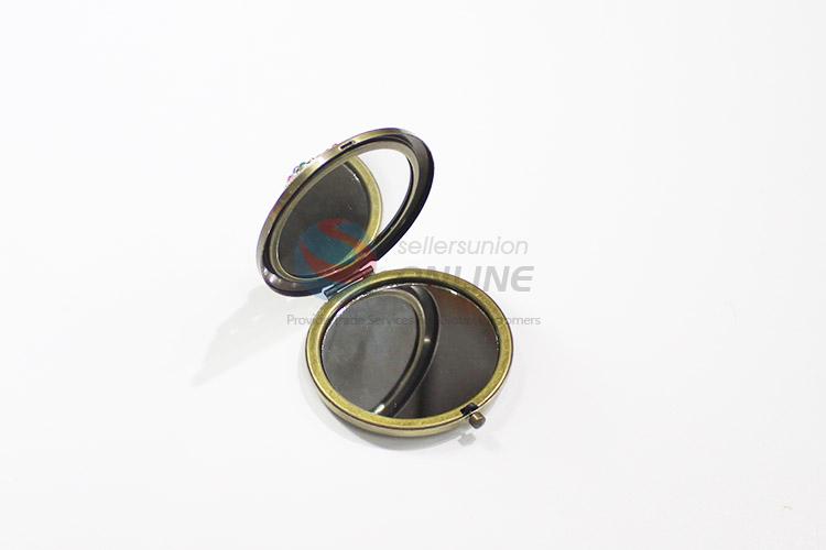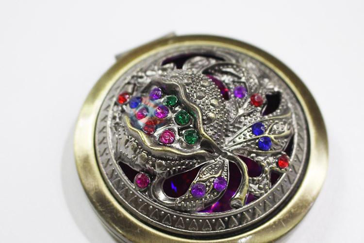 Fashionable design round hollow alloy mirror with colorful stones