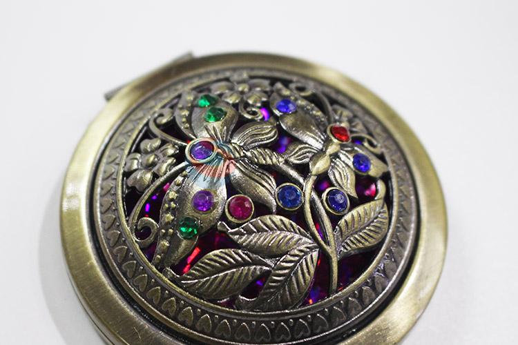 Factory supply round hollow alloy mirror with colorful stones