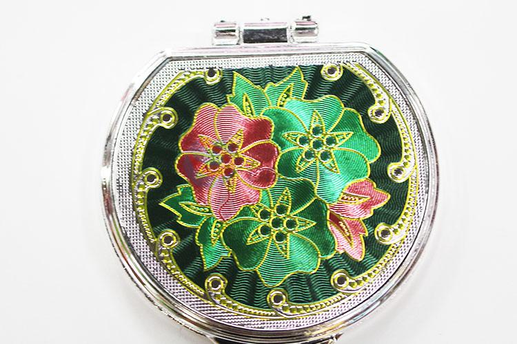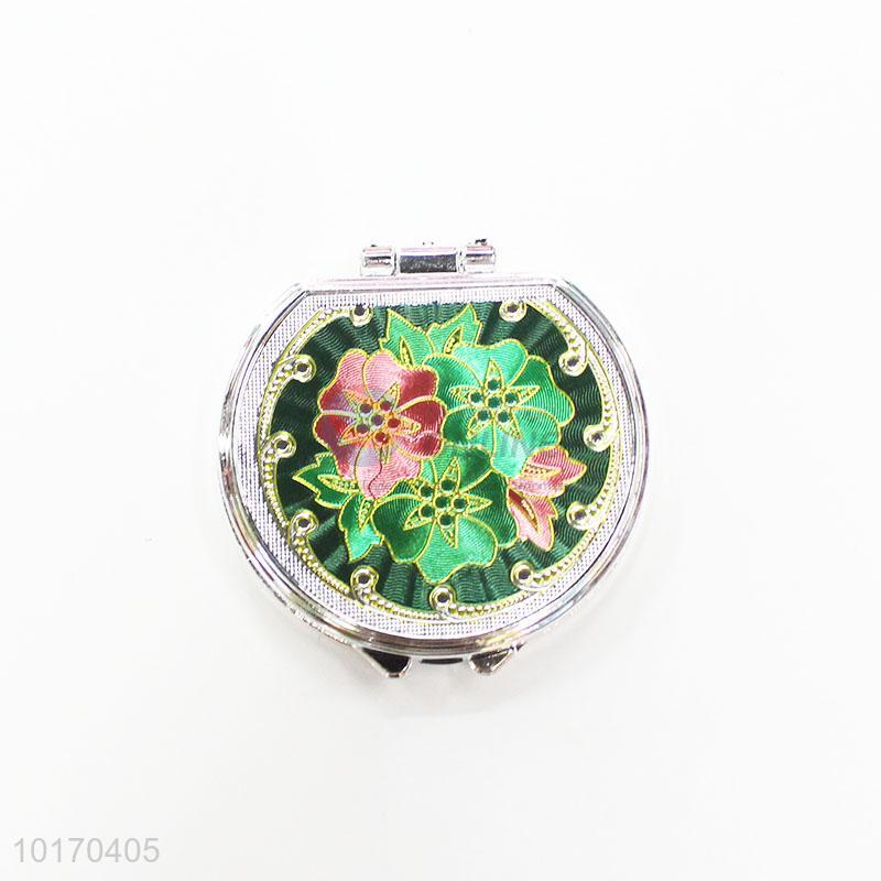 Nice Flower Pattern Mini Round Plastic Cosmetic Mirror