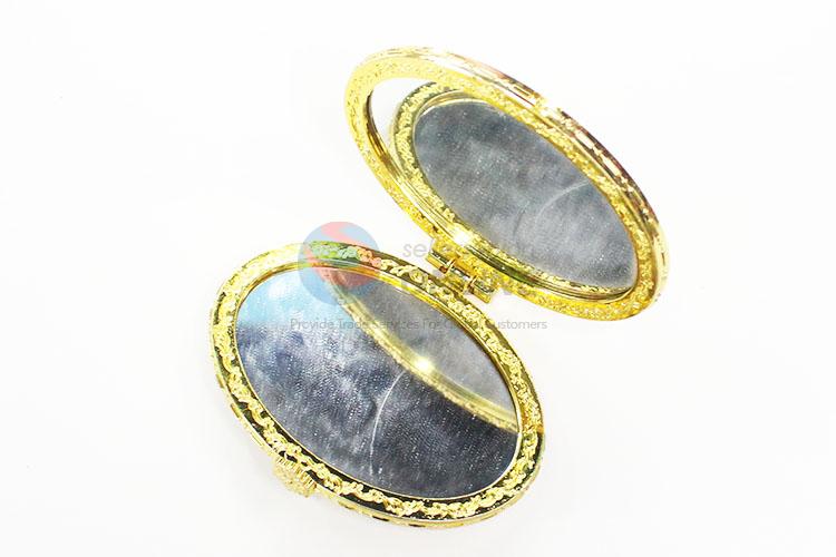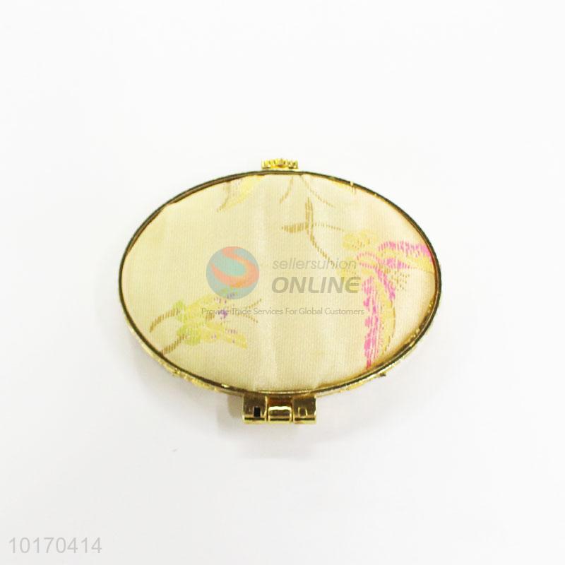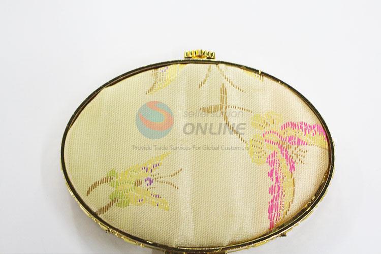 Butterfly Pattern Yellow Mini Elliptical Silk Fabrics Cosmetic Mirror