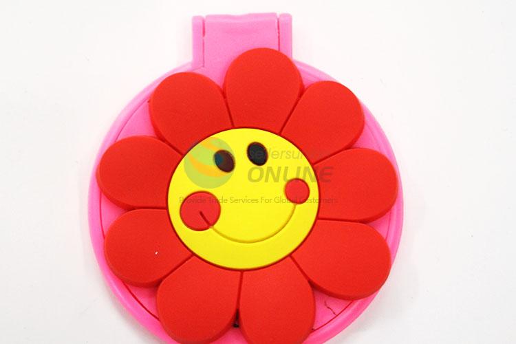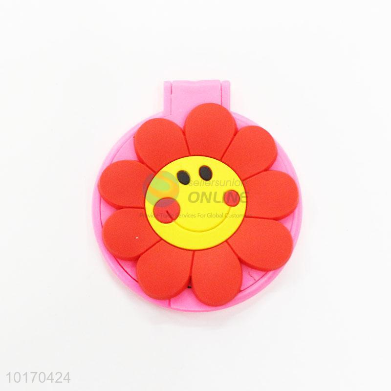 Adorable Flower Pattern Mini Round Plastic Single-sided Cosmetic Mirror
