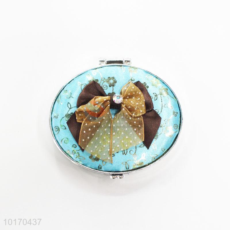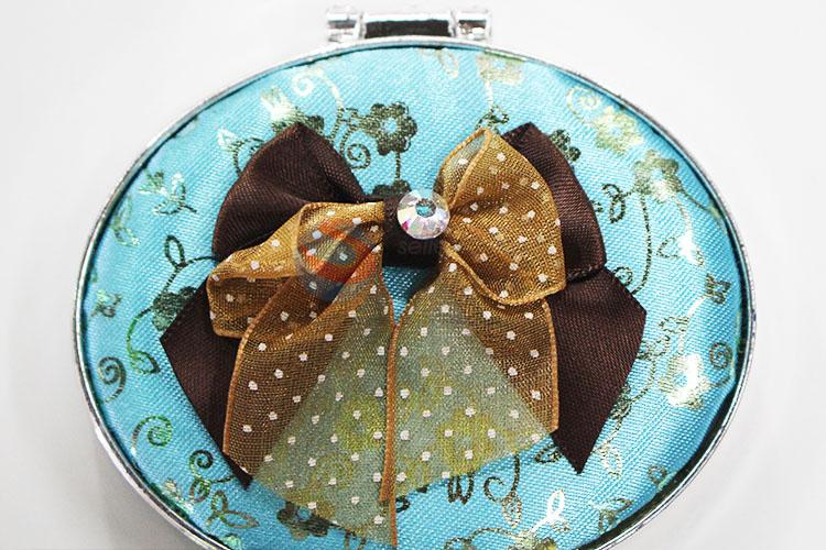 Fashionable Blue Mini Round Cosmetic Mirror with Bowknot