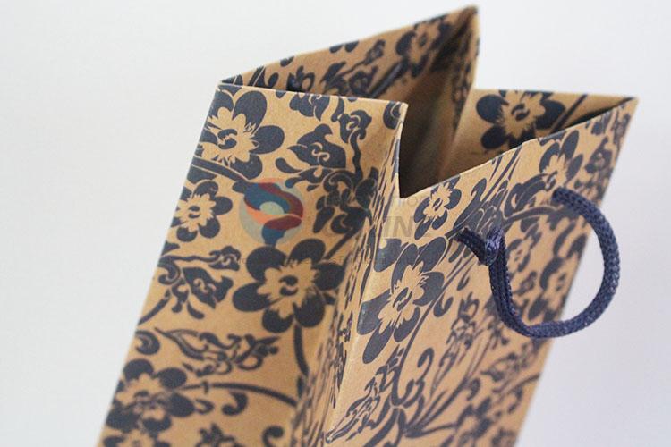 Retro flower printed kraft wine bottle paper bag