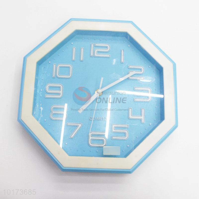 Popular Home Decorative Octagon Shaped Light Blue Glass&Plastic Wall Clock