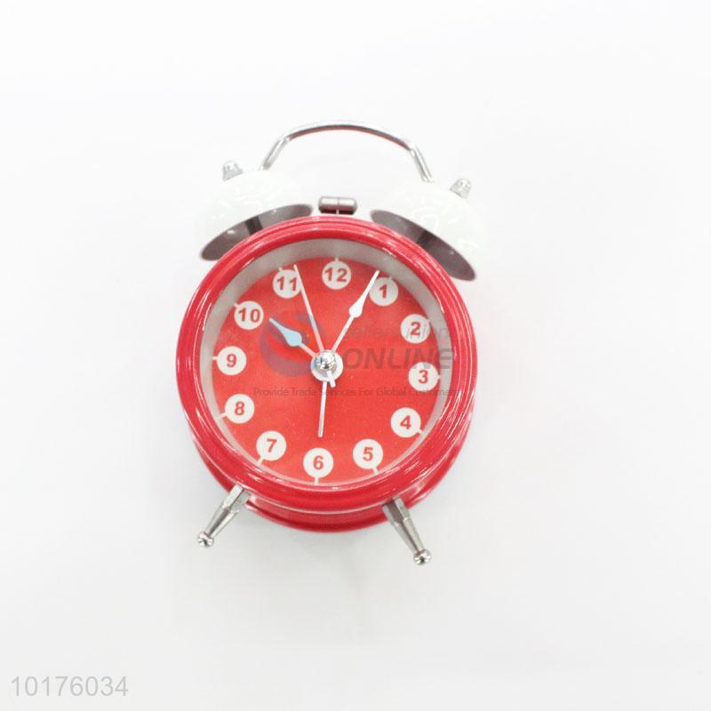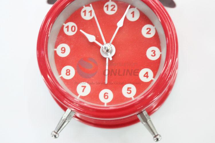 Red color metal mini round living room alarm clock