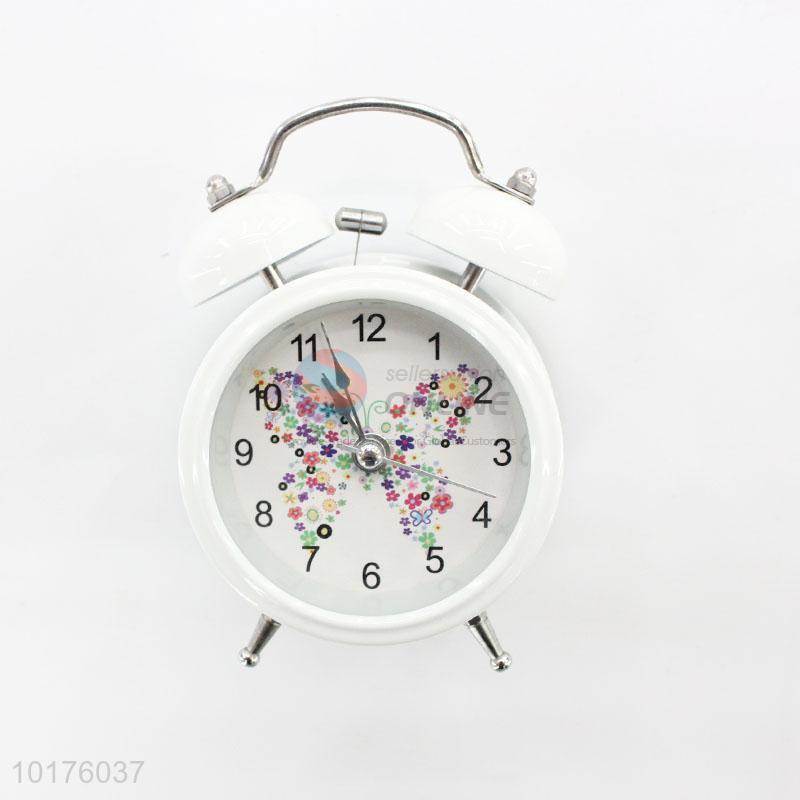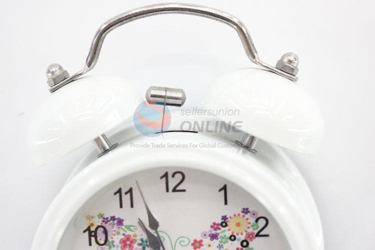 Two bell ring white metal alarm clock