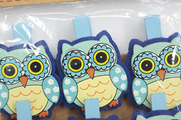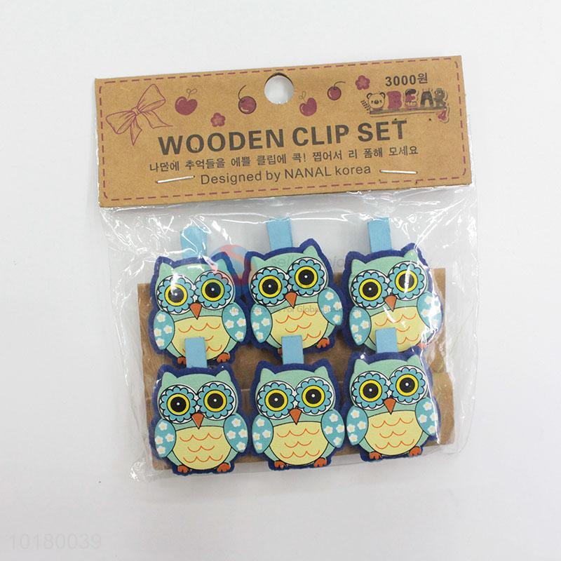 Wholesale 6 pieces blue owl wooden clip