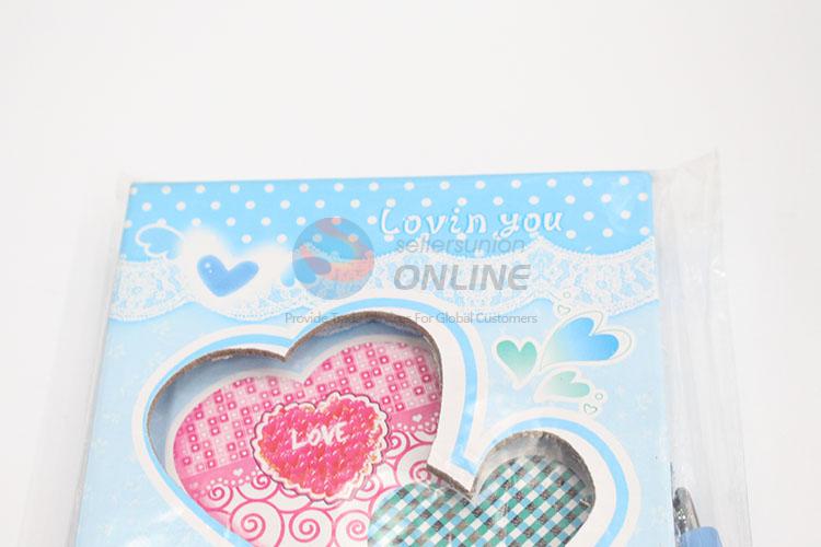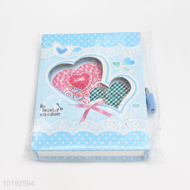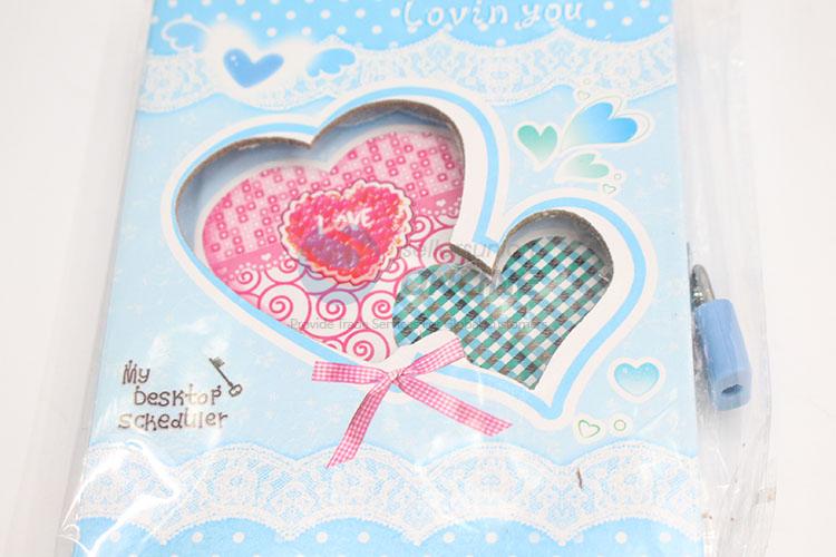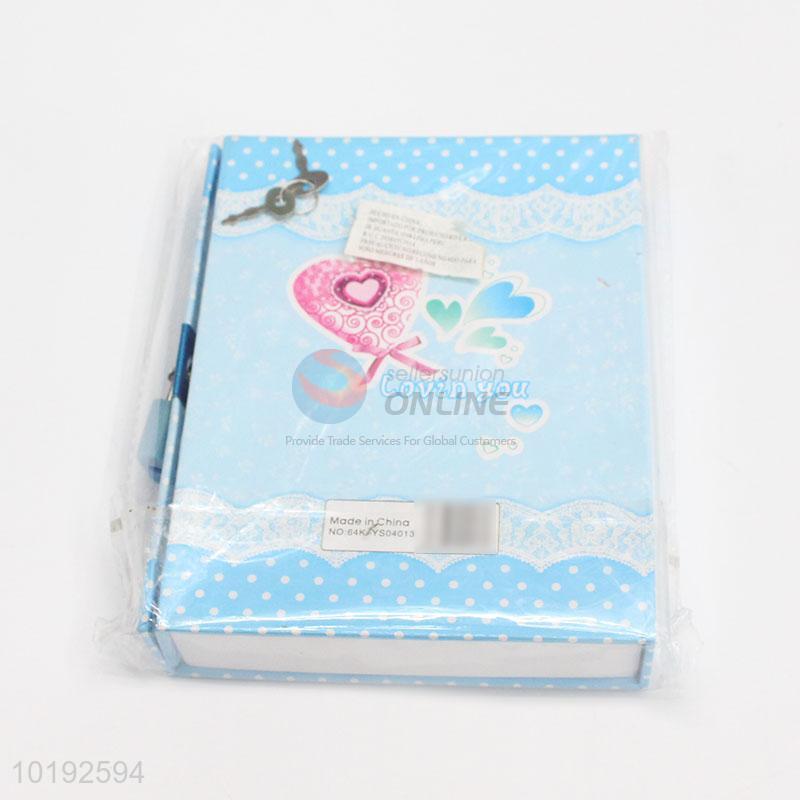 Love Heart Printed Blue Creative Dairy Notebook with Lock