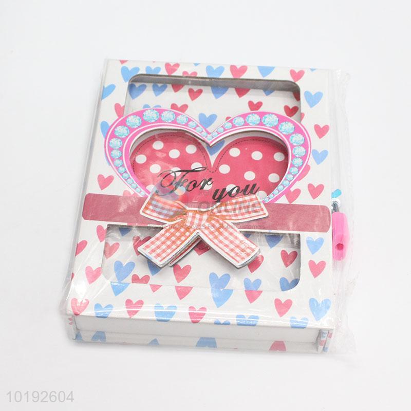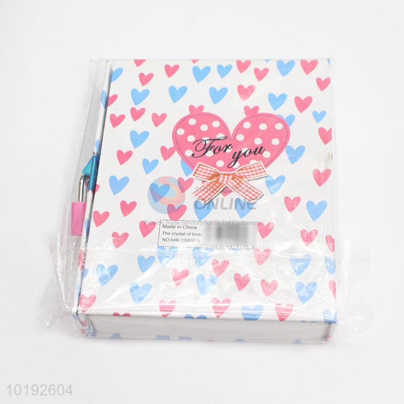 Heart Bowknot Printed Creative Student Notebook with Lock