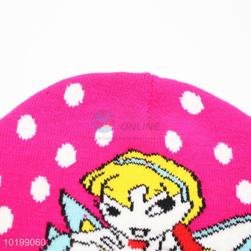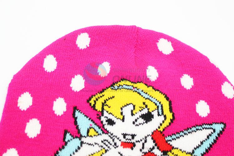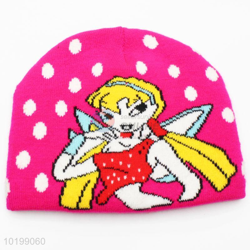 Pink acrylic knitted hat for kids