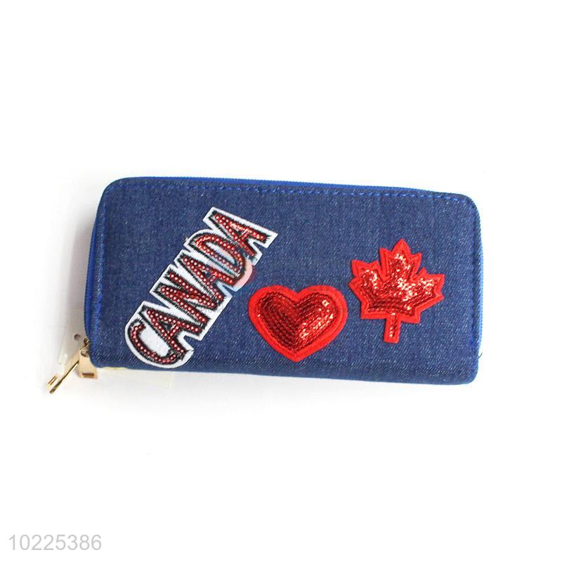 Fashion Denim Ladies Purse Double Zipper Wallet