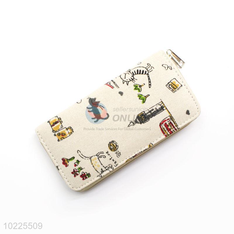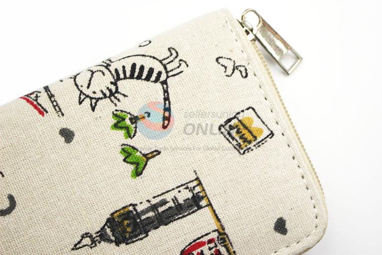 Adorable Cat Design Canvas Purse&Wallet with Polyester Zipper for Sale