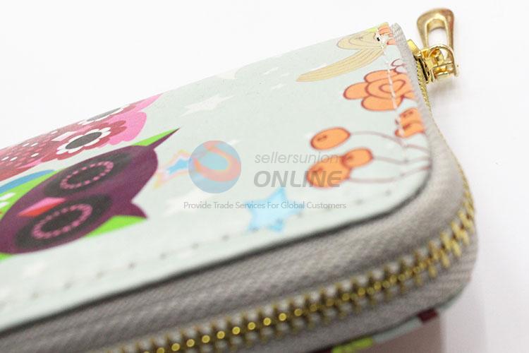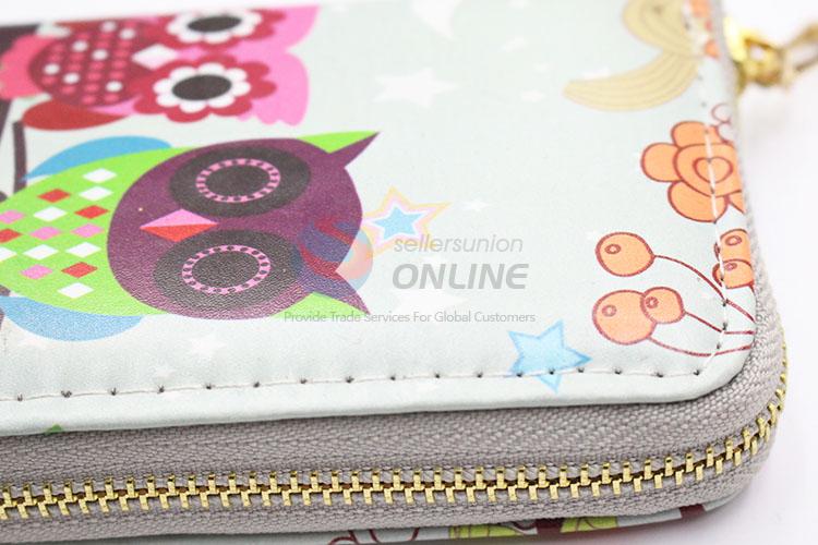 Popular PVC Purse Owl Printed Handy Long Wallet for Sale