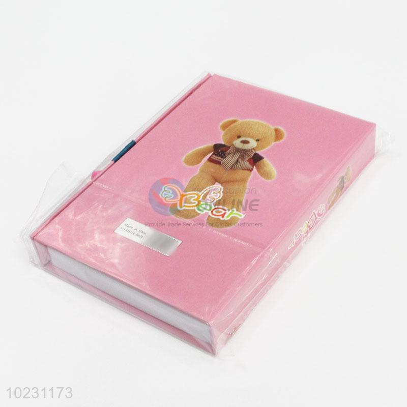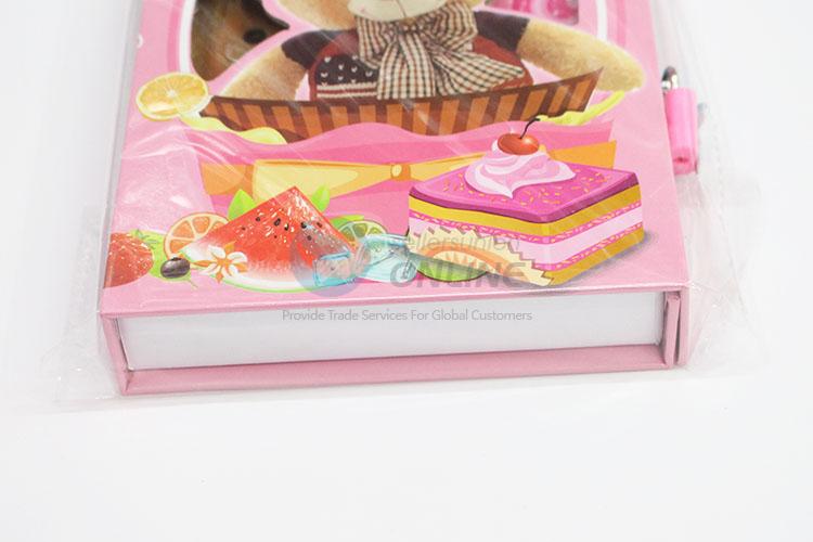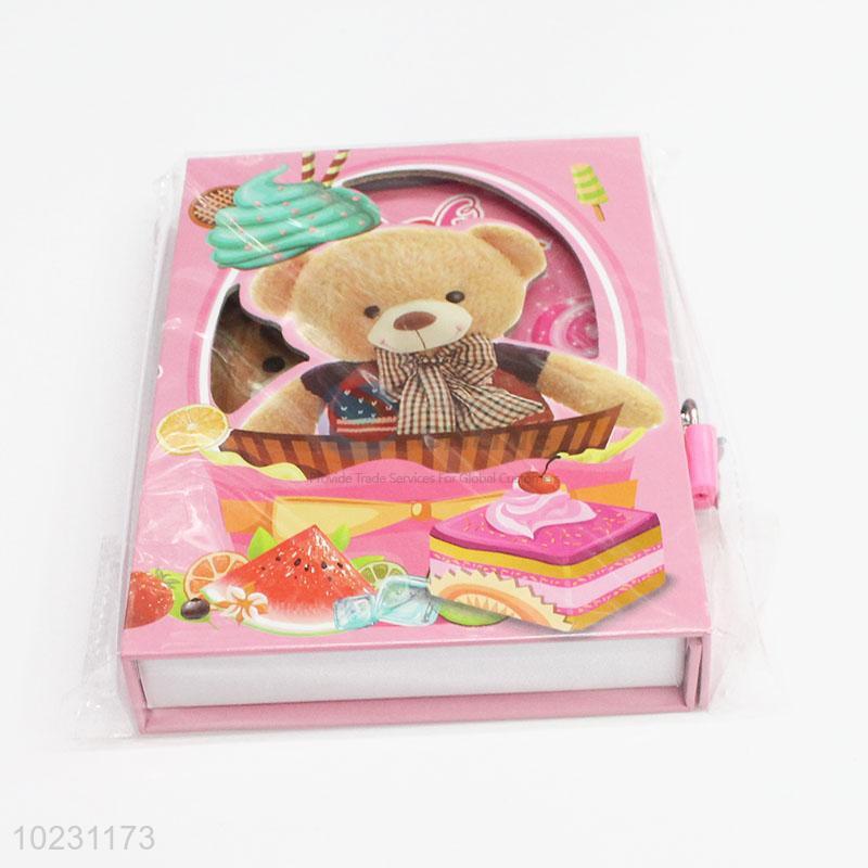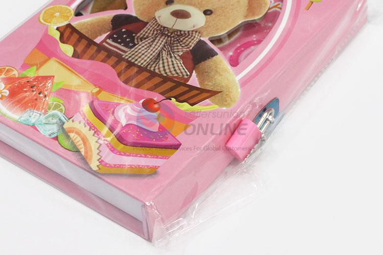 School Supply Pink Color Bear Pattern Notebook with Lock