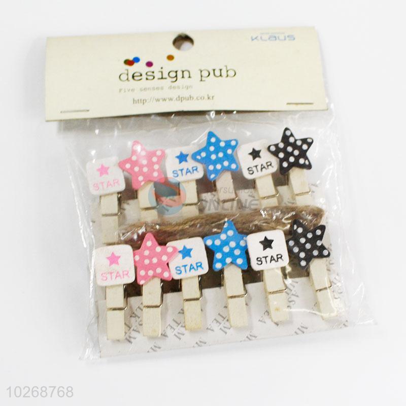 Factory Supply Office Accessories Cute Mini Star Shaped Wooden Clips Memo Clip