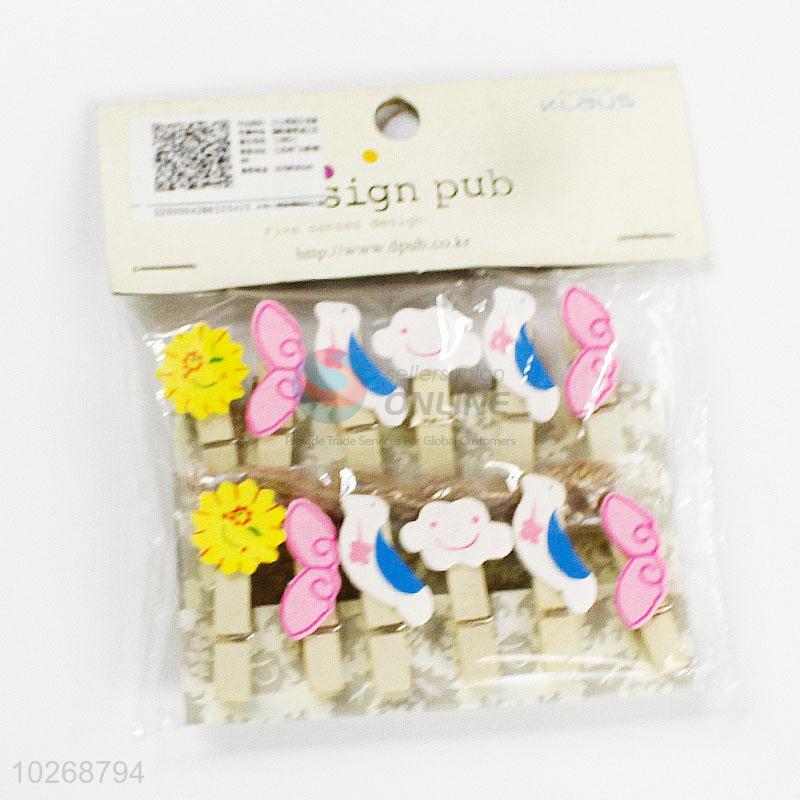 New Customized Cartoon Shaped Wooden Clip Photo Paper Craft DIY Clips with Hemp Rope