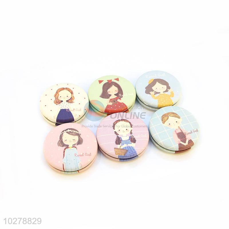 Cute Girl Printed Round Pocket Cosmetic Mirror for Sale