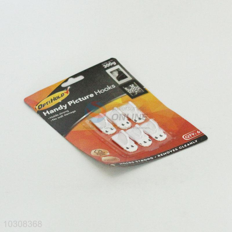 6PC Plastic White Strong Adhesive Hooks