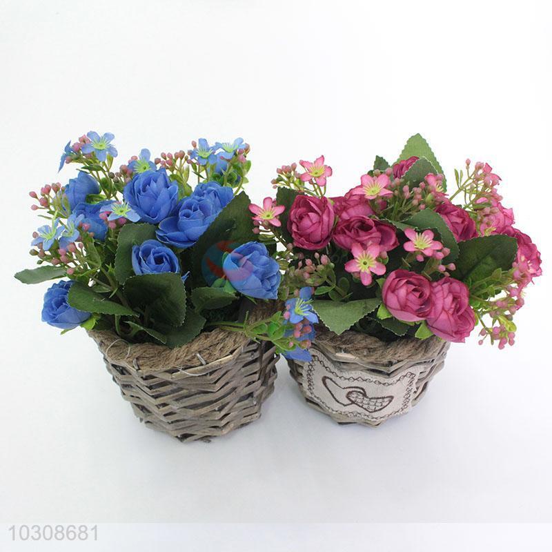 Promotional artificial flower with wheat-straw flowerpot