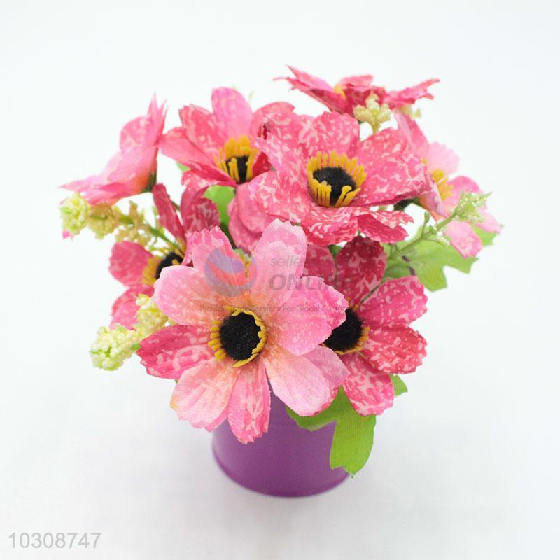 Popular promotional artificial flower with iron flowerpot for home decoration