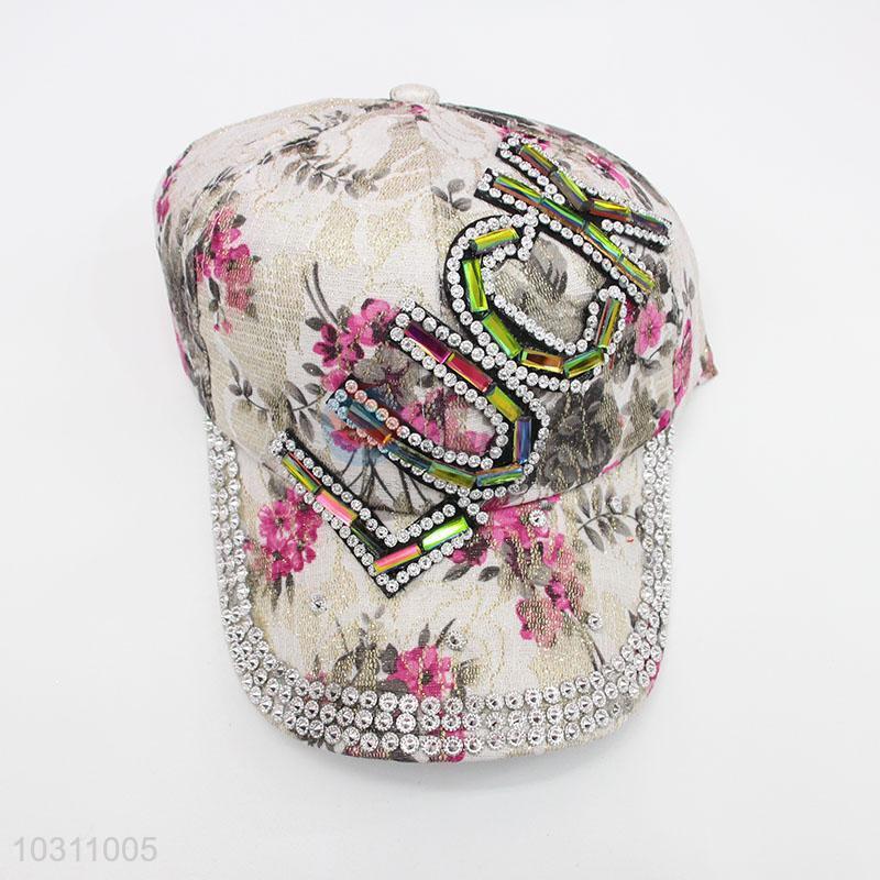 High Quality Fashion Flower Pattern Rhinestone Denim Hat Caps