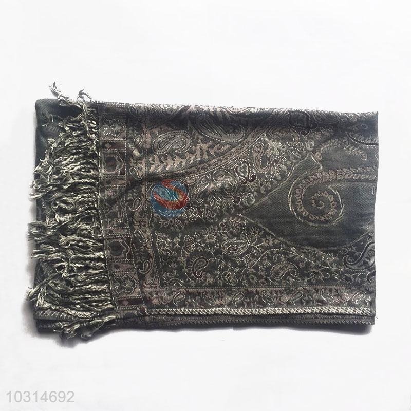 Dark Grey Color High Quality 100% Cotton Jacquard Scarf