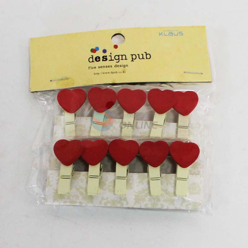 Cute Love Heart Wooden Clips