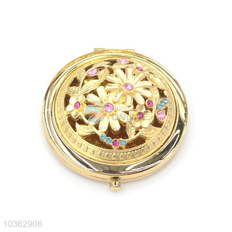 Unique Design Engraving Foldable Round Cosmetic Mirror