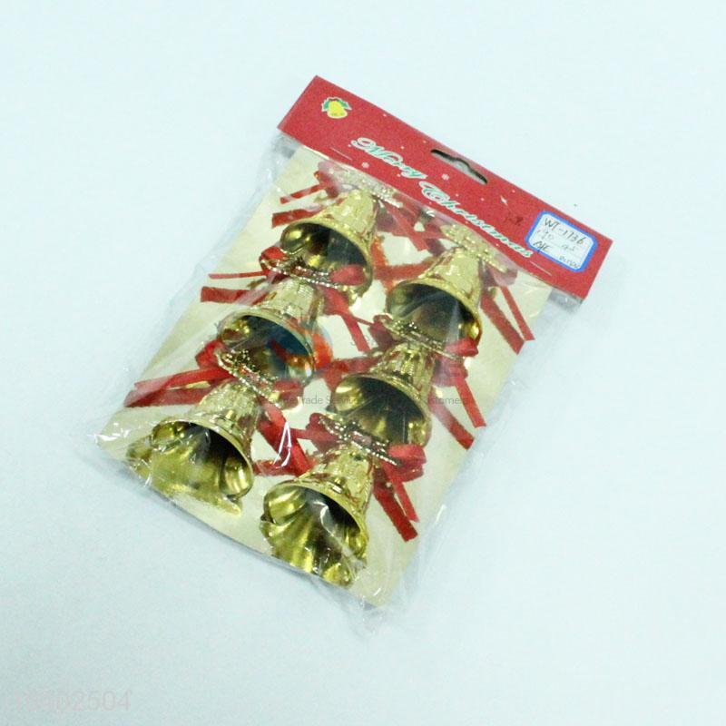 High Quality 6Pcs Christmas Bells Decorative with Ribbon
