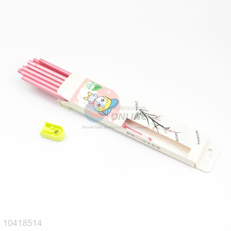 Simple Style Pink Color HB Pencils With Pencil Sharpener
