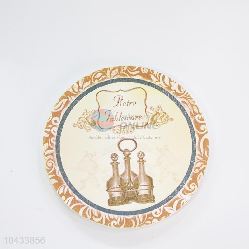 Wine Bottle Pattern Round Wood Cup Mat