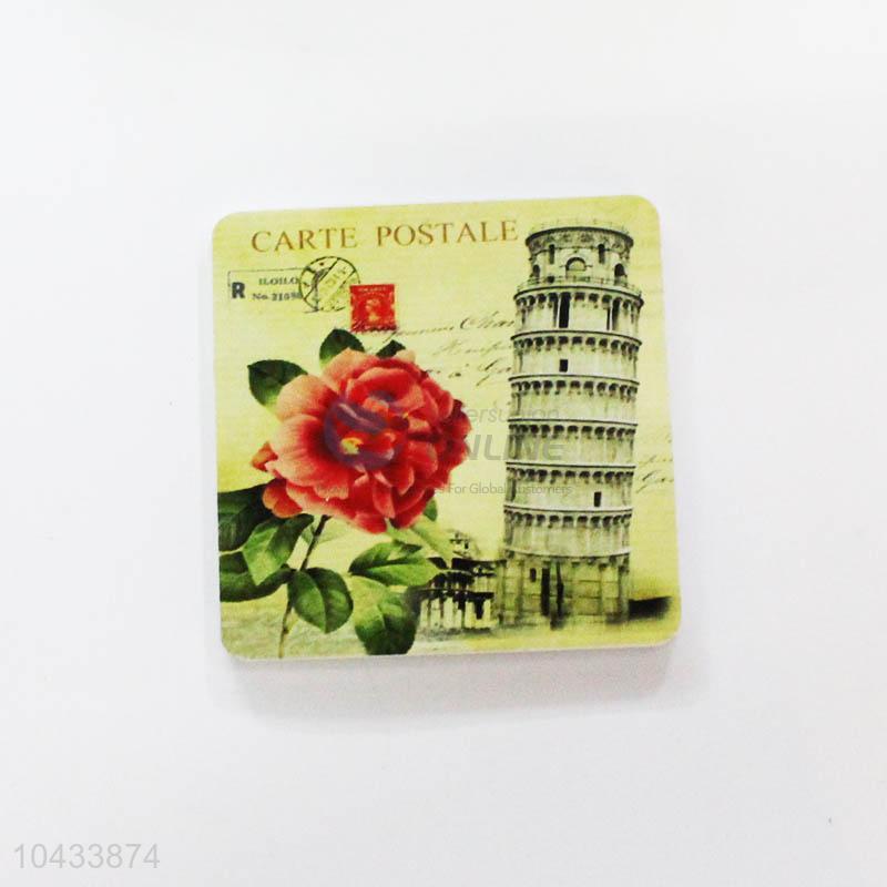 Flower Pattern Square Wood Cup Mat