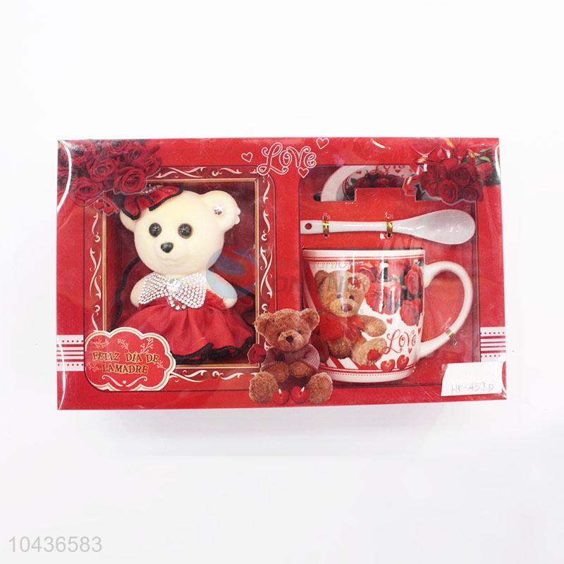 Good quality ceramic couple mug with bear doll