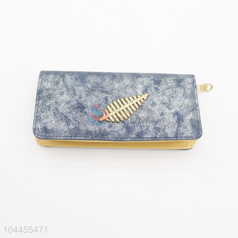 Fashion Leaf Pattern Women Wallet Semi Pu Leather Long Purse