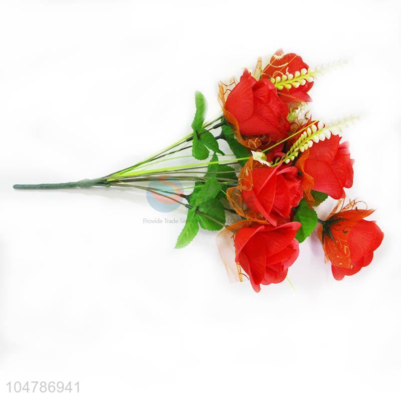 6 Heads Mini Red Rose Artificial Flowers Wedding Party