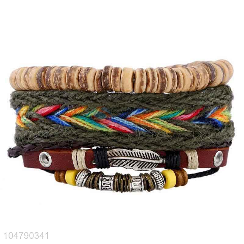 Nice fashion cheap vintage braided leather bracelet set