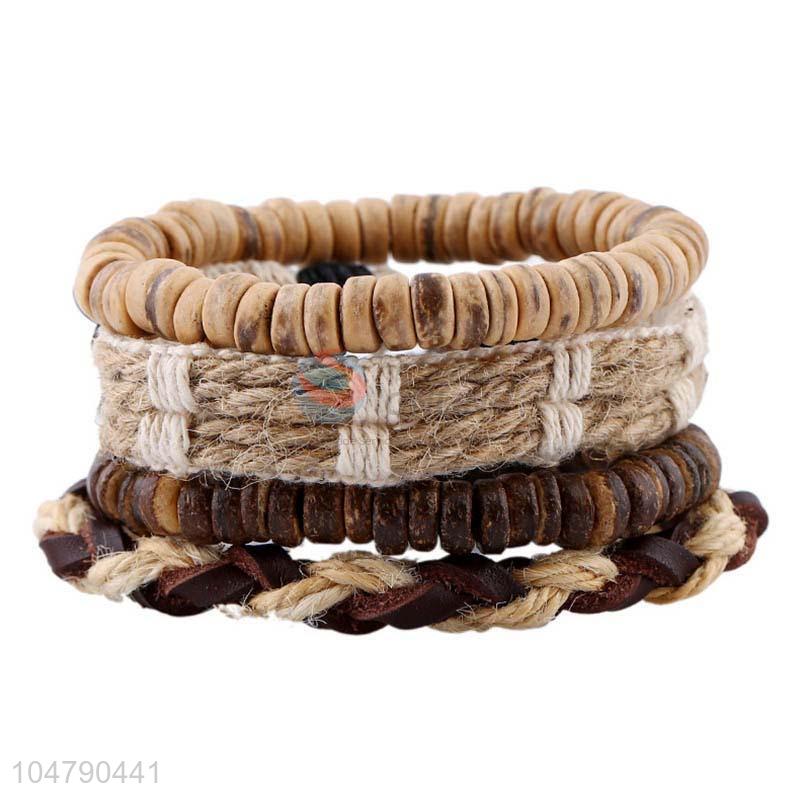 Resonable price vintage braided leather bracelet set